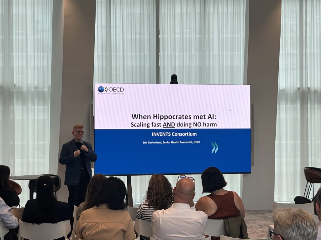 During this annual meeting, we also had the pleasure of welcoming Eric Sutherland, Senior Health Economist at EOCD, as a special guest speaker. He delivered a fascinating talk entitled: “When Hippocrates met AI: Scaling fast AND doing NO harm”, offering deep insights into how to use health data responsibly – minimizing potential harm to individuals while emphasizing the importance of operationalizing people, policy and processes.
